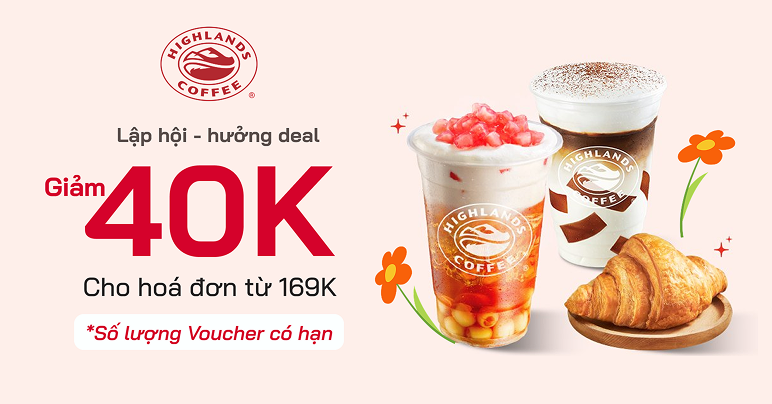 Deal hời Highlands - giảm 40k cho hóa đơn từ 169k